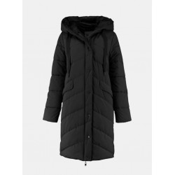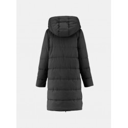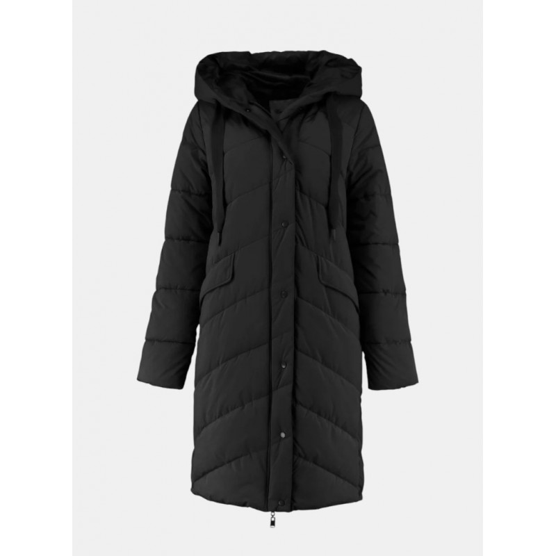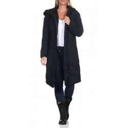 Parka  para mujer de capucha con cordones ajustables, cierre de cremallera frontal bidireccional con tapeta de botones, tiras de cierre a presión en los laterales y dos bolsillos laterales con solapa y forro polar.