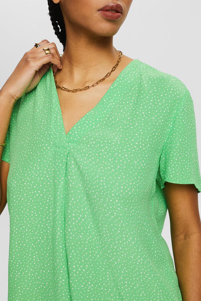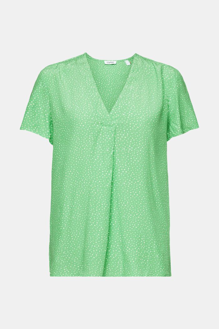Esta blusa vaporosa de viscosa ligera con LENZING™ ECOVERO™ cae suavemente sobre la piel y te proporciona un tacto suave y cómodo. De manga corta y cuello pico de corte recto.