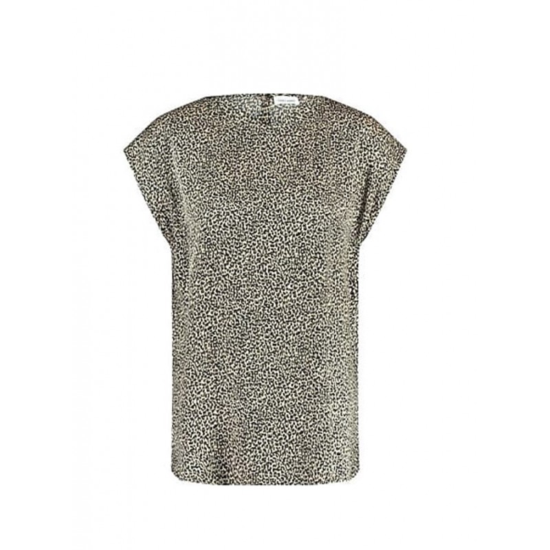 Blusa estampada para mujer de cuello caja, cierre trasero de botón con abertura de agua y manga sisa.