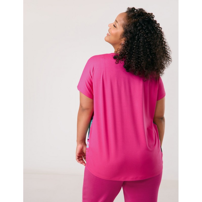 Blusa estampada para mujer.Su fluido tejido frontal con estampado abstracto le aporta un toque sofisticado, mientras que la suave espalda de jersey garantiza una comodidad excepcional.