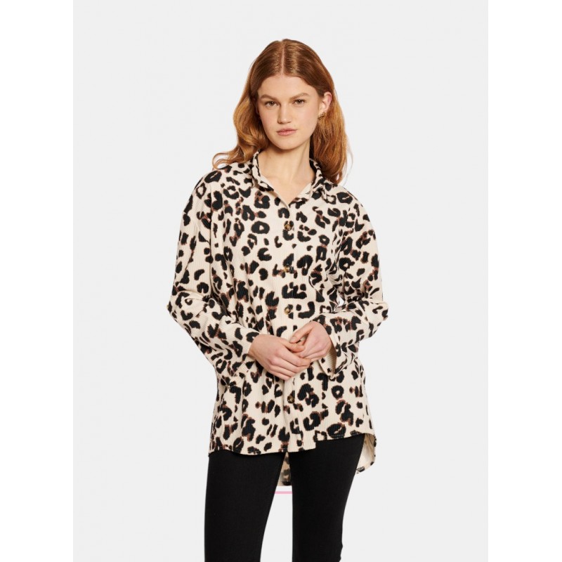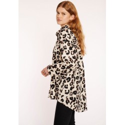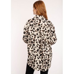 Blusa animal print para mujer de cuello de solapa, cierre de botones y mangas largas.