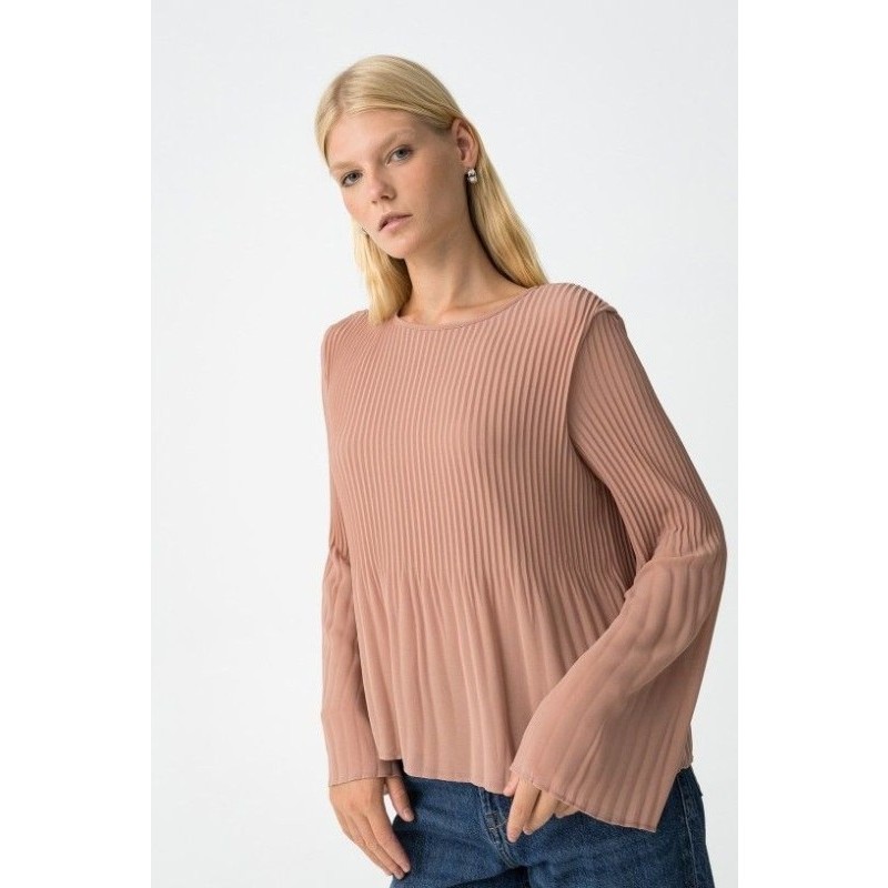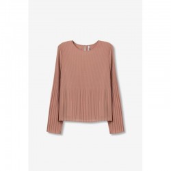 Blusa plisada para mujer. De manga larga y cuello redondo. Su caída fluida y su textura delicada aportan elegancia.