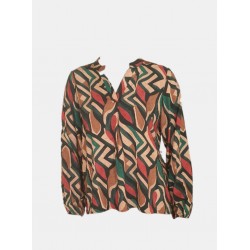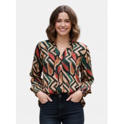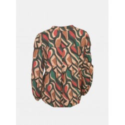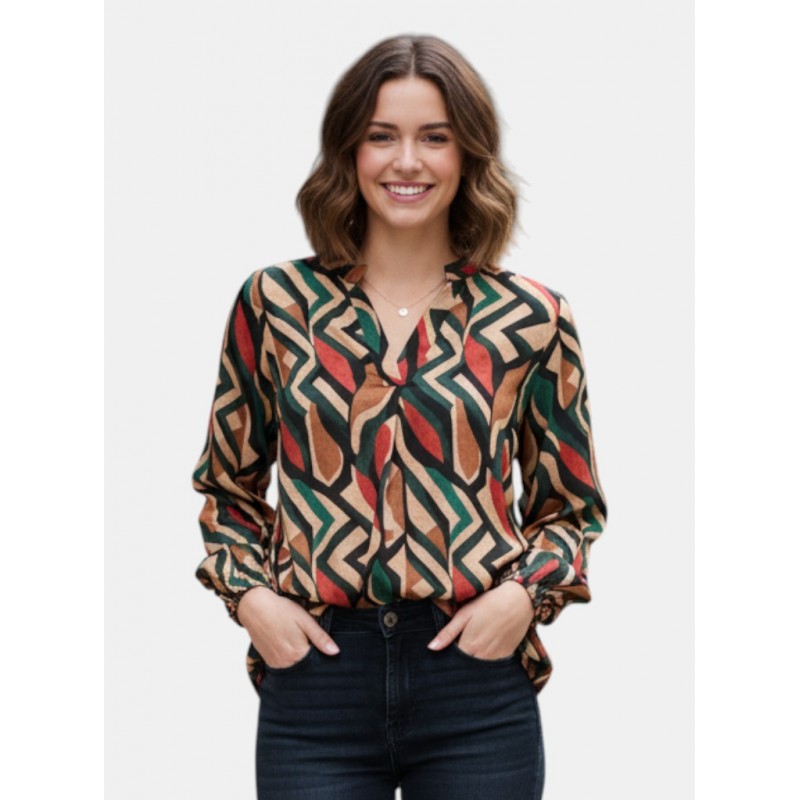 Blusa estampada fluida para mujer de escote en V y de mangas largas con puños elásticos.
