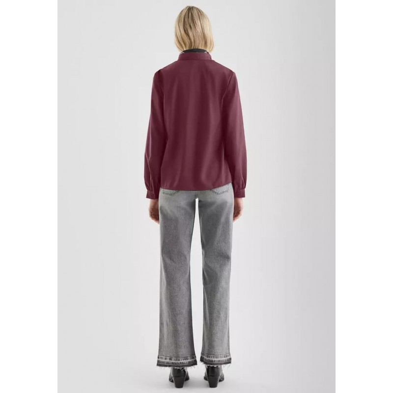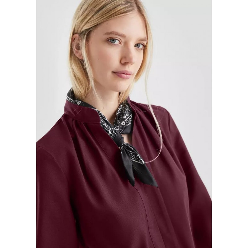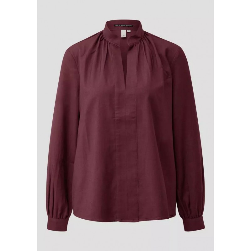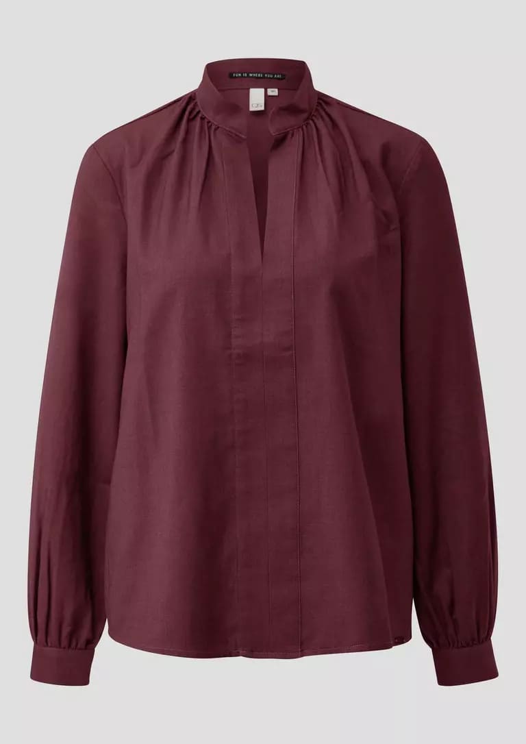 Blusa para mujer de cuello alto mao, escote en pico, detalles fruncidos en cuello y mangas largas.
