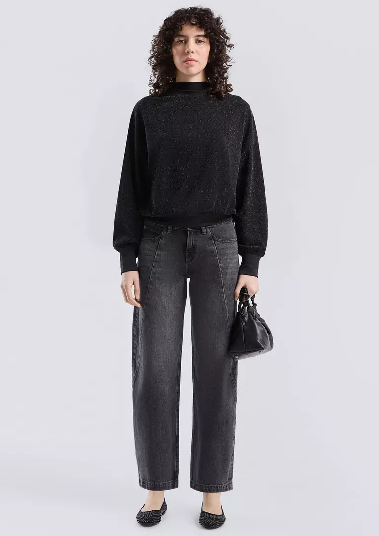 Sudadera de punto para mujer. Cuello redondo. Efecto brillante. Ajuste relajado.