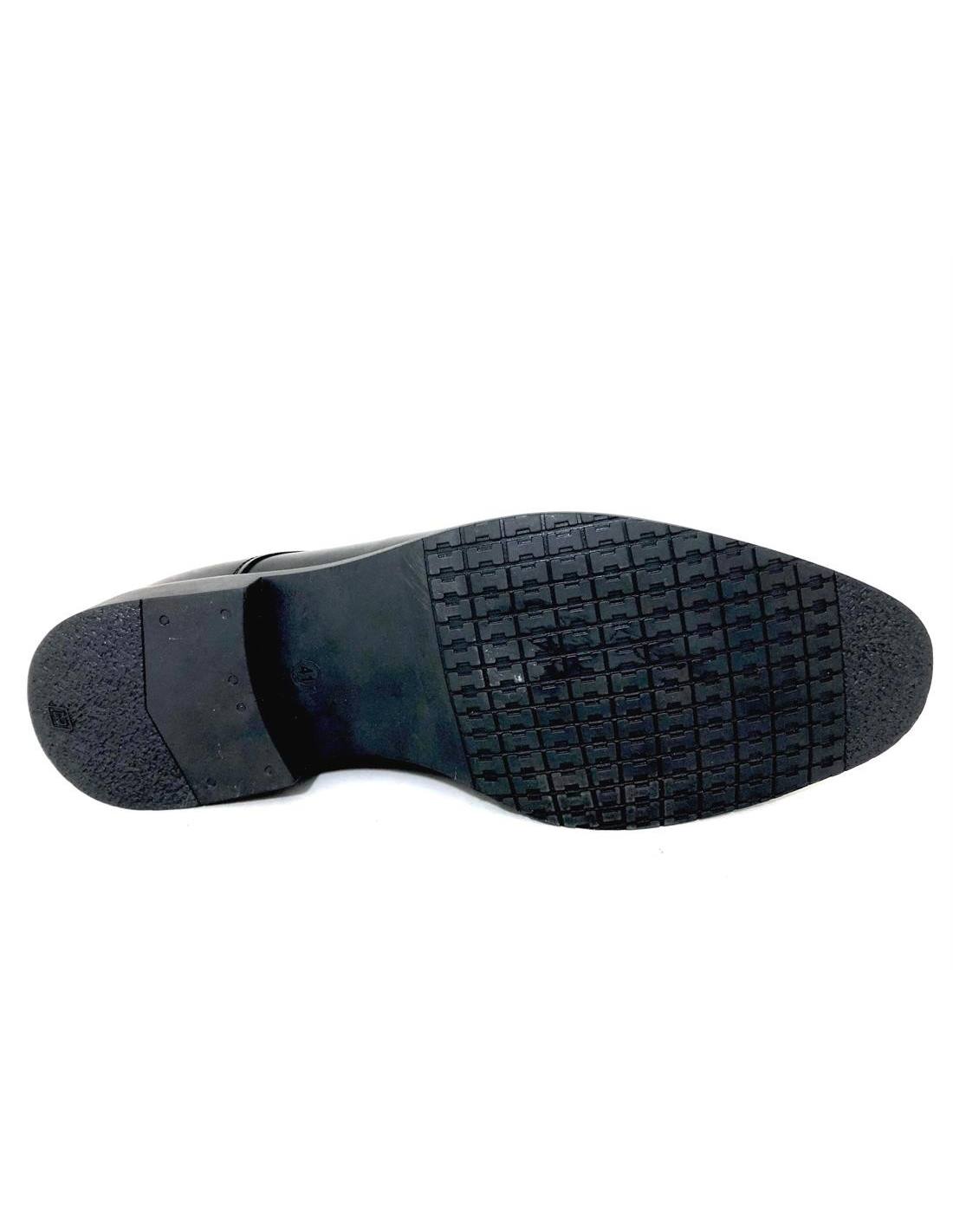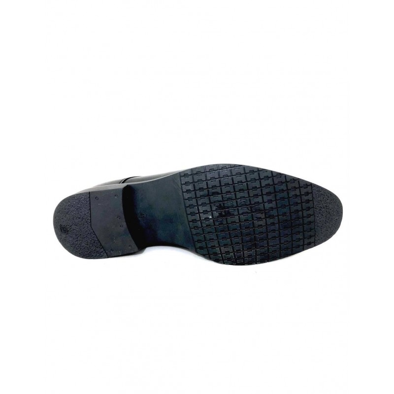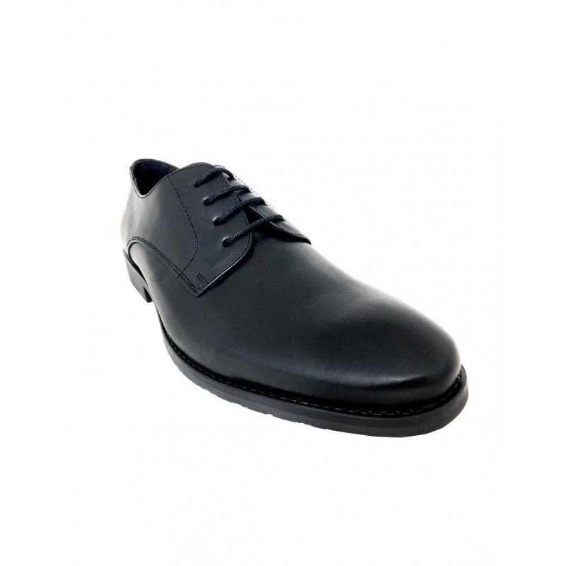 Calzado de caballero para vestir con corte clásico y pala lisa, fabricado por TOLINO, de color negro, en piel vacuno soft de primera calidad con cierre mediante cordones. Forro de piel y piso de goma antideslizante cosido. Ancho especial 10. Fabricación española.