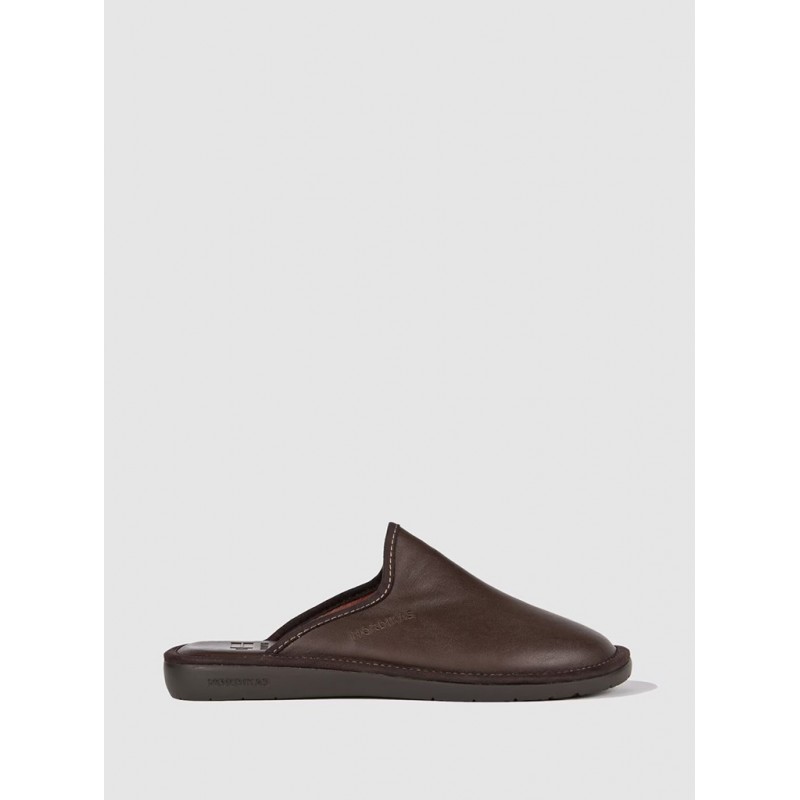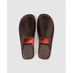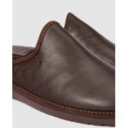 Zapatillas de casa fabricadas en piel para hombre.Suela de goma.