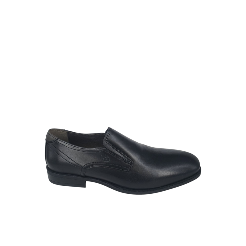 Zapato de vestir para hombre.Sin cordones. Puntera redondeada. Costuras visibles en los laterales y alrededor del empeine.