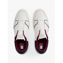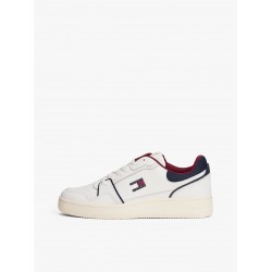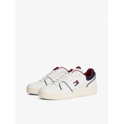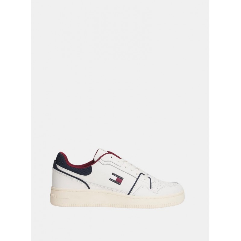 Deportivo retro para hombre de cierre de cordones, exterior en mezcla de piel, detalles de la marca a contraste, paneles con mezcla de texturas a contraste, plantilla extraíble de goma termoplástica reciclada, otros tejidos y poliuretano y suela de goma finamente dentada.