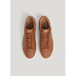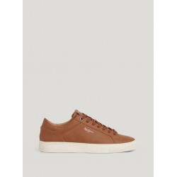 Deportivo casual efecto piel para hombre. Cierre de cordones. Ojal metálico personalizado con logo grabado. Logo PEPEJEANS termosellado en laterales. Plantilla termoformada y extraíble. Suela cupsole de caucho.