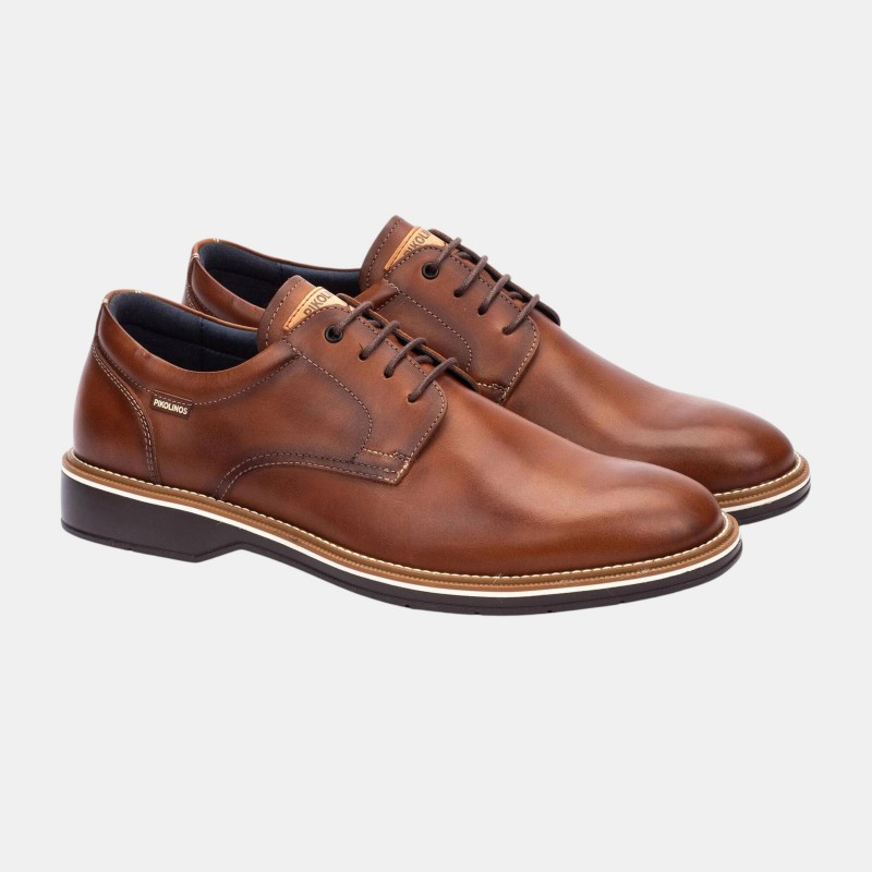 Zapato de cordones para hombre. Confeccionado en piel suave, cuenta con una plantilla extraíble y acolchada, ideal para tus días más activos. Su suela ligera de 2.5 cm te ofrece la estabilidad que necesitas para recorrer la ciudad con confianza. Perfecto para cualquier ocasión, su diseño versátil se adapta a tu ritmo de vida. El cierre de cordones asegura un ajuste perfecto, porque cada paso cuenta.