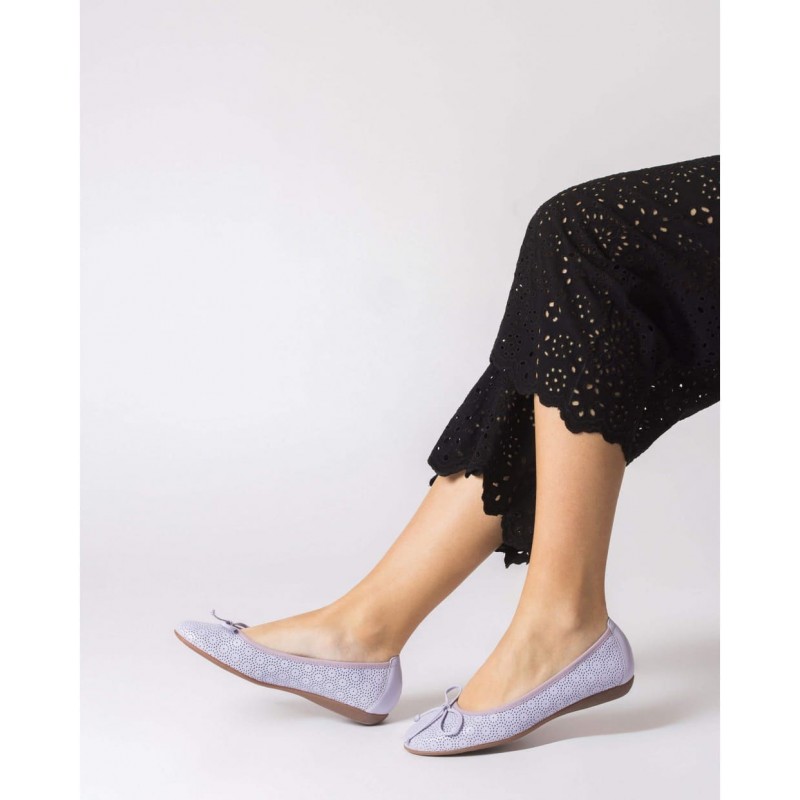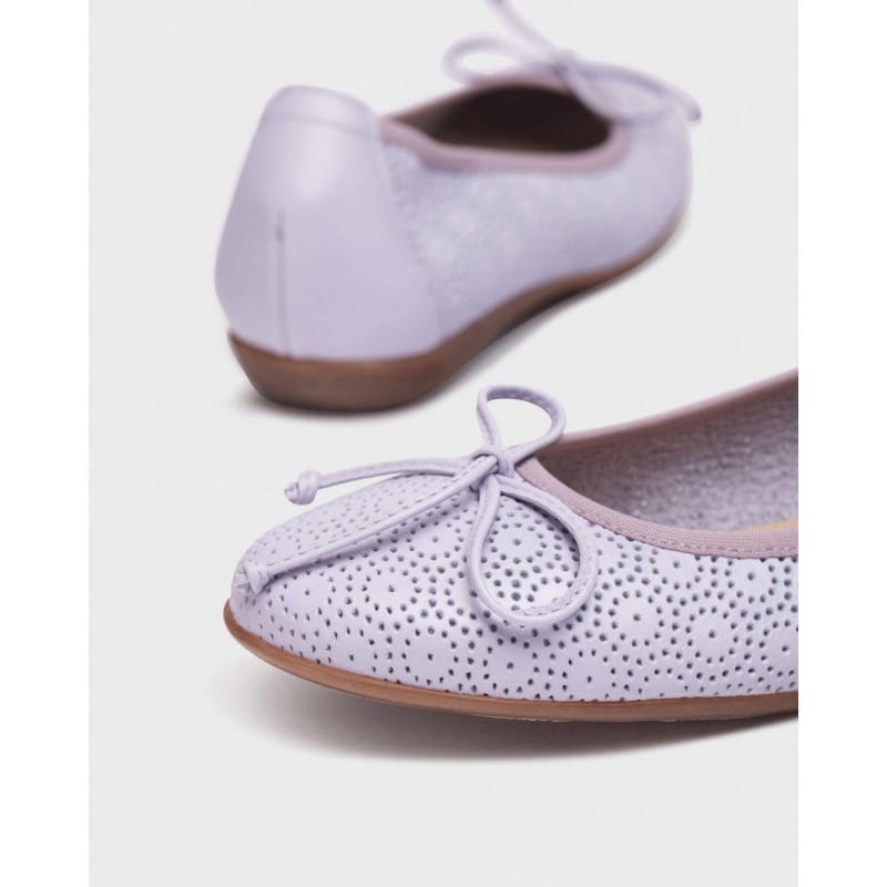 Francesa para mujer de piel perforada con detalle de lazo en el empeine y plantilla con memory Gel en interior más suela de goma.