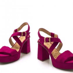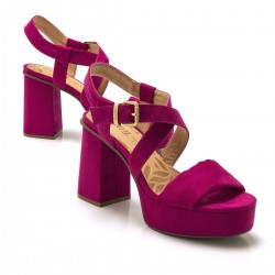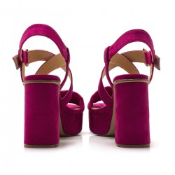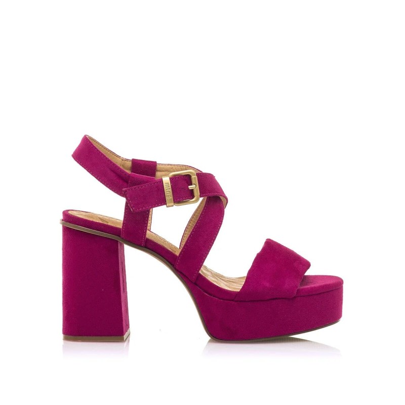 Zapato de mujer con tiras que van del empeine al tobillo, cierre de hebilla ajustable y tacón de 9 cm cuadrado en bloque con plataforma delante.