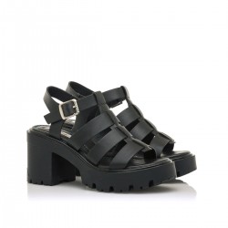 Sandalia para mujer con diseño estilo cangrejera y tiras en el empeine con tira hasta el tobillo, cierre de hebilla y un tacón de 8 cm.