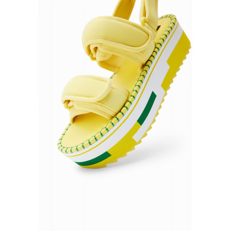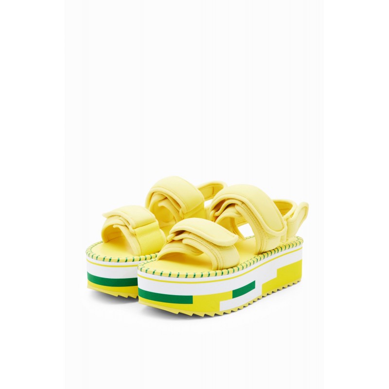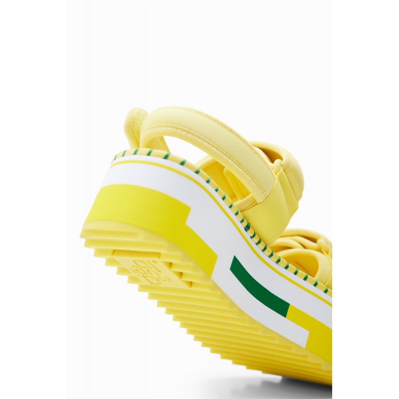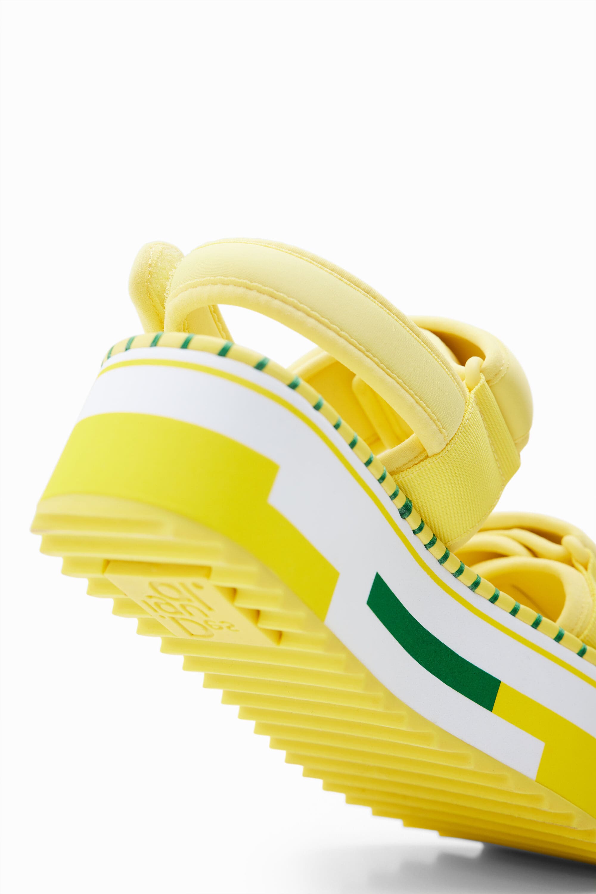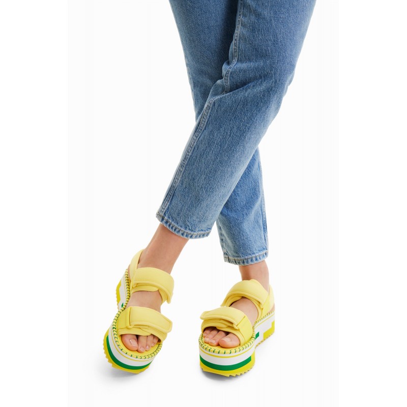 Sandalia plataforma para mujer de estilo deportivo, cierres de velcro acolchados, plataforma ancha más suela a contraste y dentada.
