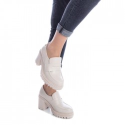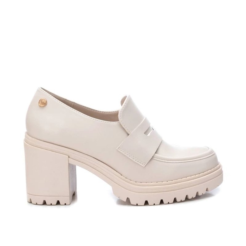 Mocasín de tacón para mujer de detalle de antifaz en la pala, plataforma delantera, suela de goma antideslizante y tacón de 8 cm.