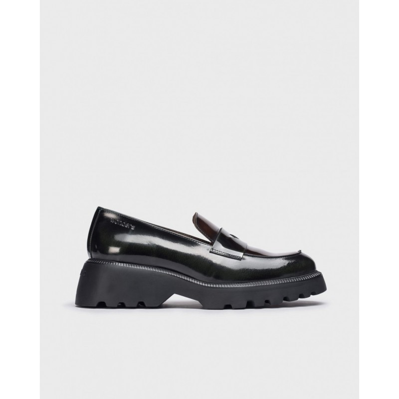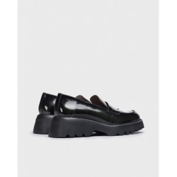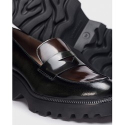 Mocasín de vestir para mujer confeccionado en piel estilo Florentín combinado con una pieza delantera a contraste, detalle en el antifaz y suela track con una altura de aprox. 4,5 cm.