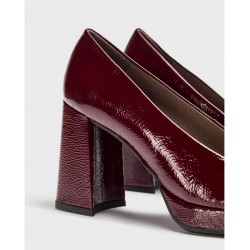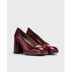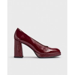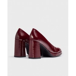 Calzado de salón para mujer en charol de tacón ancho con una altura de 9 cm.