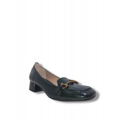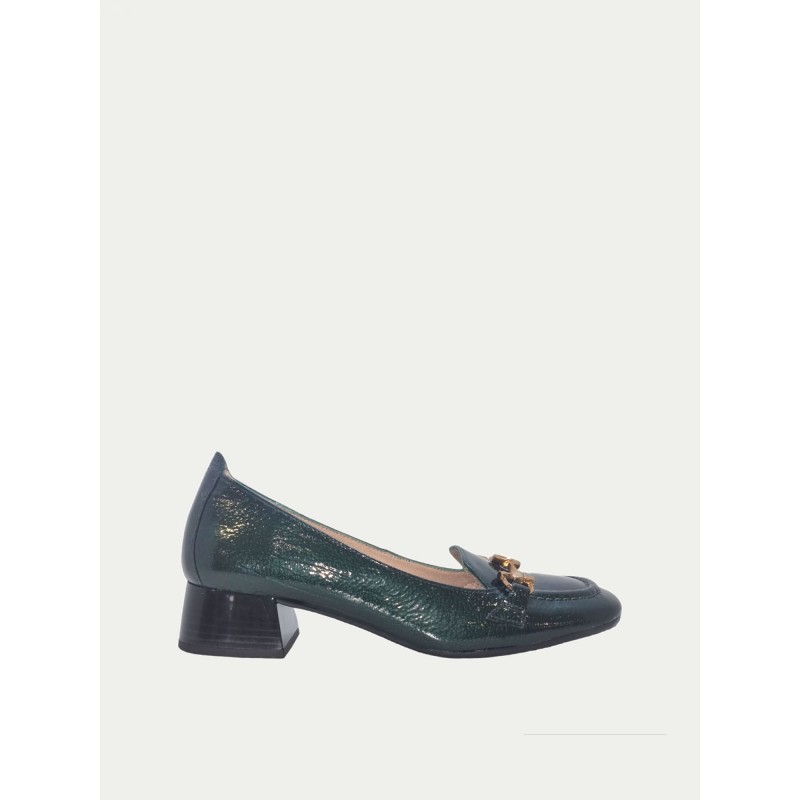 Mocasín realizado en piel de tacón 3.5 cm elaborado en charol. Suela de alta calidad y detalle de eslabón metálico al tono.
