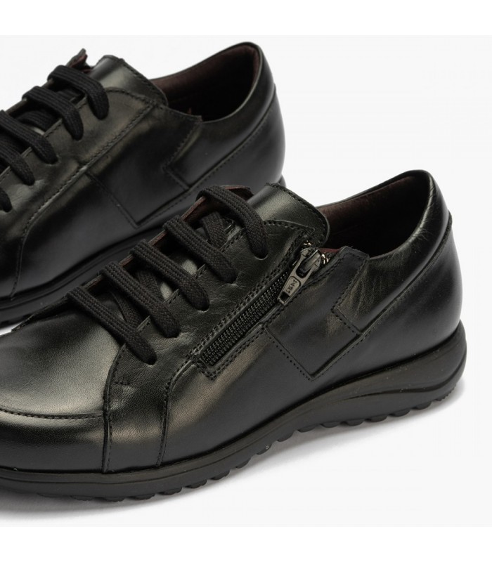 Deportivo elaborado en piel napa. Diseño juvenil que combina cierre de cordones y cierre de cremallera. Un calzado actual y moderno con innegables cualidades de confort. Forro textil transpirable Microtex-Técnico Arnedry. Plantilla acolchada extraíble y suela de goma flexible y antideslizante. Hecho en España.