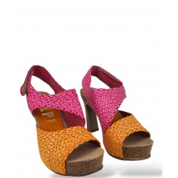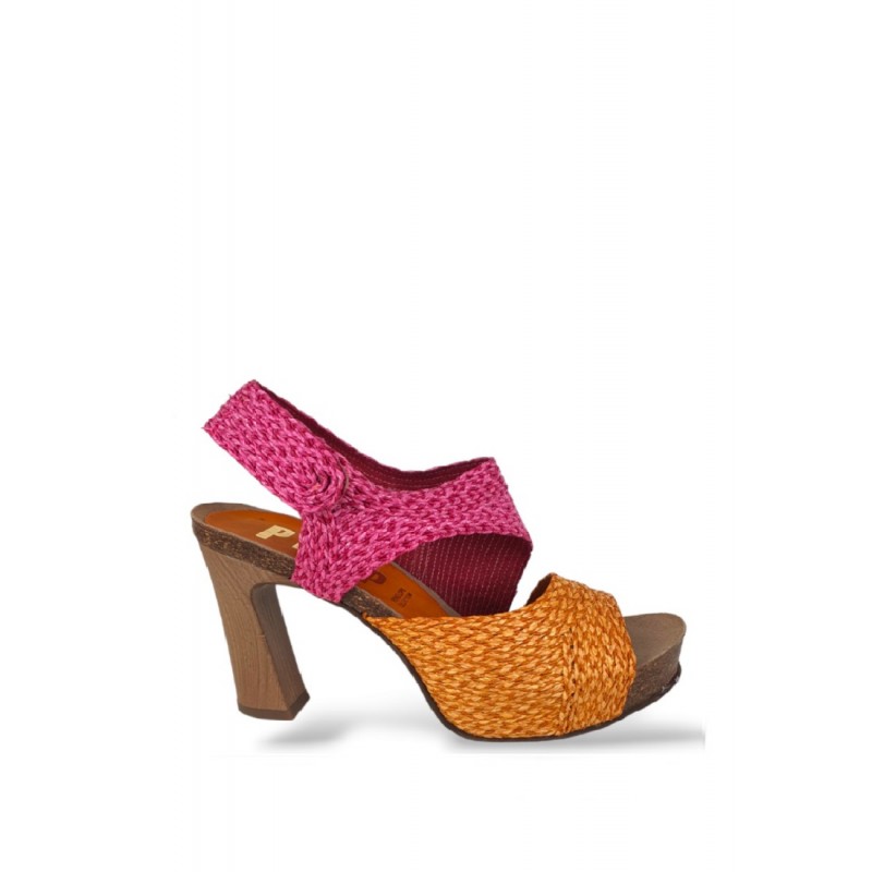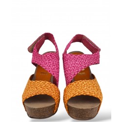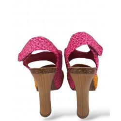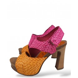 Sandalia de tacón para una mujer innovadora, atrevida, que sigue las tendencias, sin olvidar el confort y la comodidad. Fabricadas en rafia tejida y tira trasera con cierre de velcro, planta anatómica bio, entresuela de corcho y suela sintética, lo que te permitirá llevarlos todo el día incluso en la noche cambiando el look. Altura del tacón 7cm. Gracias a su diseño y confort, serán un imprescindible en tu armario esta temporada. Fabricadas en España 100%