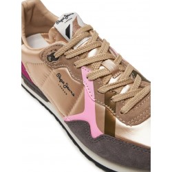 Deportivo para mujer de cierre de cordones, detalles de colores con acabados brillantes y texturas a contraste, plantilla acolchada y suela de goma.
