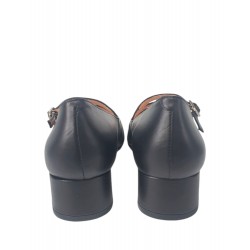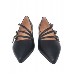 Salon de tacon para mujer. Puntera en pico. Con tres hebillas.