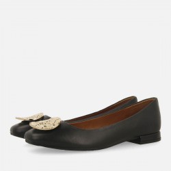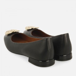 Bailarinas de piel con adorno metálico para mujer. Incorporan plantilla muy acolchada y piso flexible.