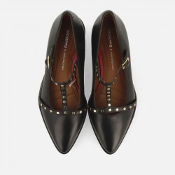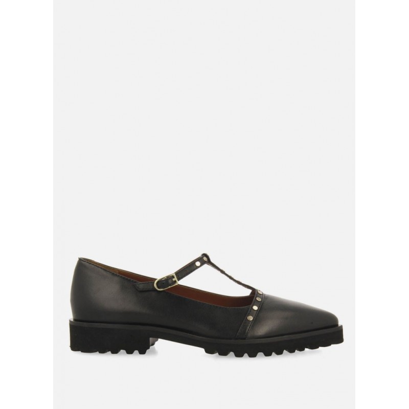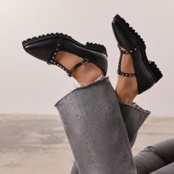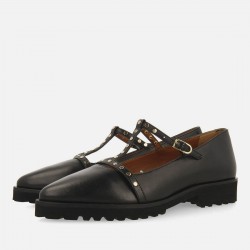 Bailarinas de piel con tachuelas para mujer. Cierres regulables y suela track. Disponen de plantilla muy acolchada y piso de EVA flexible.