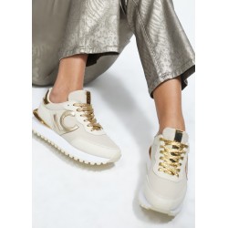 Zapatillas deportivas tipo sneakers con detalles dorados combinados para mujer.