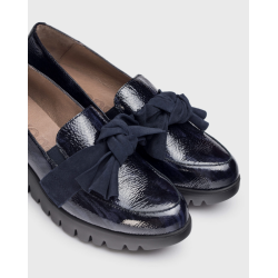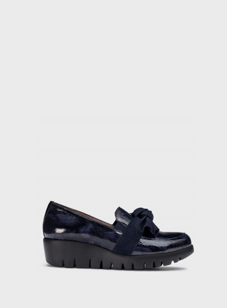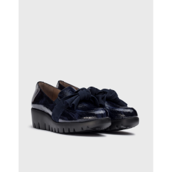 Mocasines confeccionados en piel charol para mujer. Detalle del nudo en la zona superior del empeine. Su suela desarrollada con la tecnología WondersFly™ garantiza ligereza y comodidad. Combinado con la plantilla interior de MemoryGel, asegura una comodidad excepcional en cada paso.