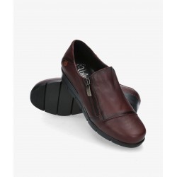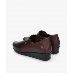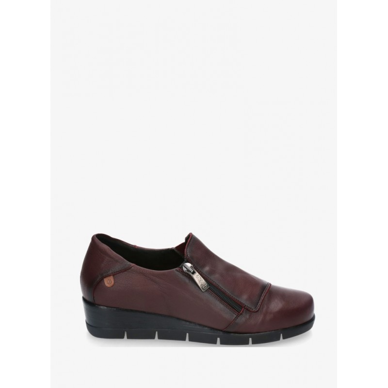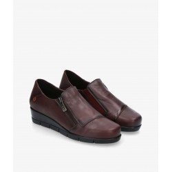 Zapato de piel para mujer. Interior forrado de franela, plantilla extraíble, cremallera lateral, suela de goma con cuña de 4cm y plataforma de 1cm.