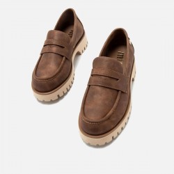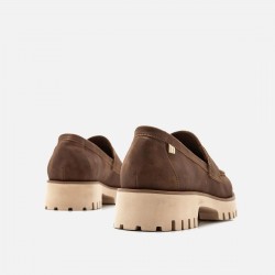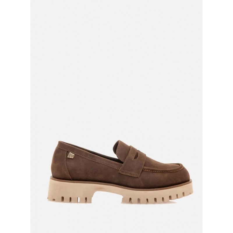 Mocasín para mujer de estilo casual de parte superior de textura ligeramente rugosa, costura en la puntera y el empeine más suela gruesa y dentada con una altura de 3 a 5 cm