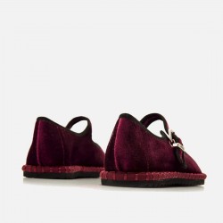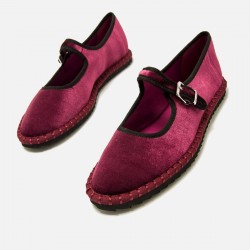 Zapato estilo bailarina para mujer.Diseñado en terciopelo. Tira alrededor del empeine con cierre de hebilla para una sujeción a medida. Suela de goma. Puntera redonda. Altura: 3 cm.