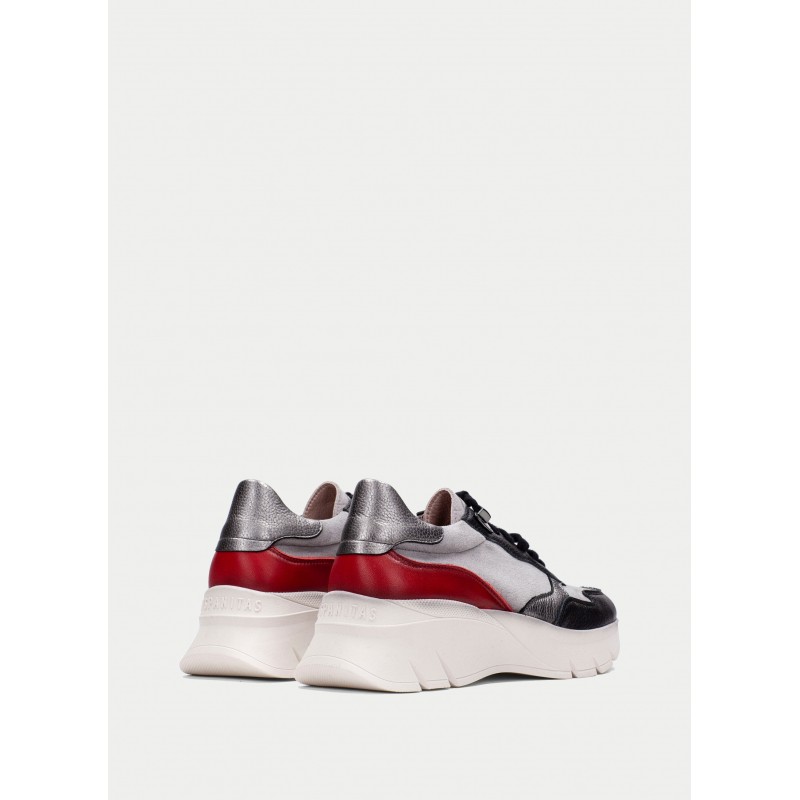 Deportivas elaboradas en piel , tejido de franela y glitter para mujer.Cierre de cordones elásticos. Este zapato incorpora la tecnología TRIFLOW, amortigua cada paso gracias a su triple almohadillado. Además, cuenta con plantilla extraíble.