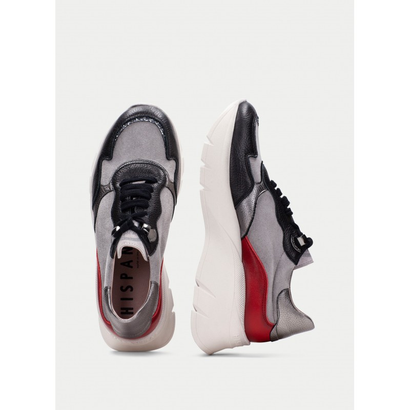 Deportivas elaboradas en piel , tejido de franela y glitter para mujer.