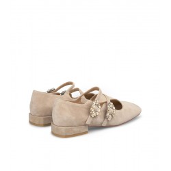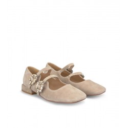 Bailarina plana para mujer.Con dos hebillas y puntera redonda. Confeccionada en piel. Detalle de pedrería.