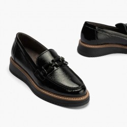 Mocasin de charol para mujer.Plantilla extraíble. Hebilla decorativa.
