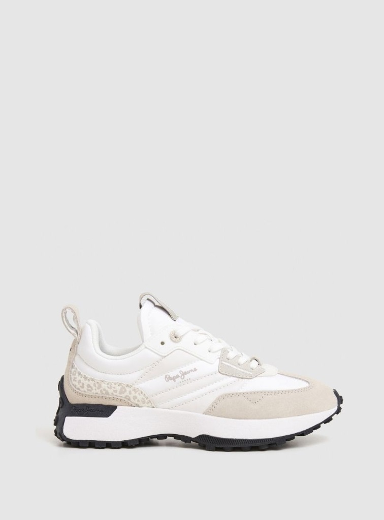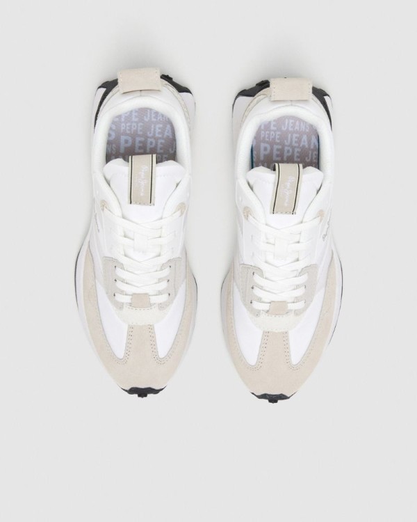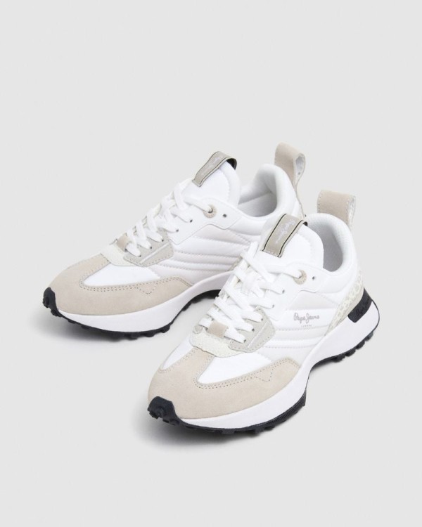 Deportivas en combinación de tejidos para mujer. Detalles de ante en puntera y talón, cierre con cordones, ojales metálicos con logo grabado, tirador trasero, entresuela ultraligera en EVA y suela de caucho con labrado circular. Detalles distintivos de la marca en los laterales, y la plantilla.