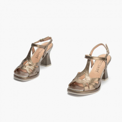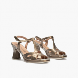 Sandalia de tacón para mujer. Confeccionada en Piel Laminada para un toque elegante y diferente.La suela de tpu garantiza ligereza y resistencia.