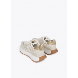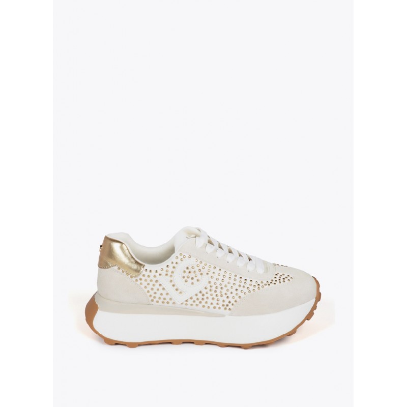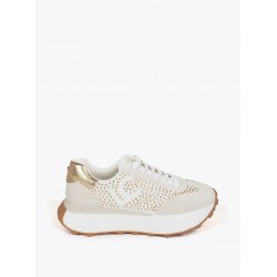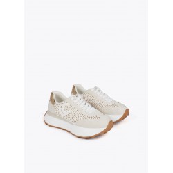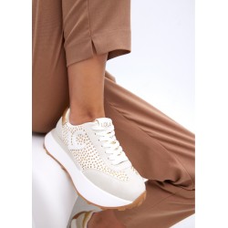 Deportivas con plataforma para mujer. Detalles de tachas metalizadas. Fabricada en material sintético con suela de goma antideslizante. Interior acolchado para mayor comodidad y cierre de cordones ajustables.