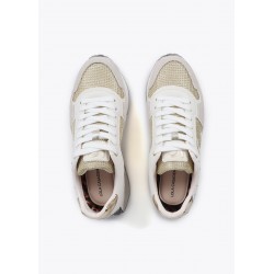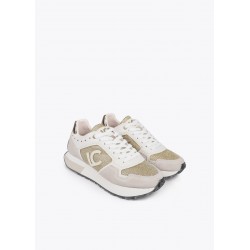 Deportivas con detalles dorados para mujer. Suela personalizada para máximo confort. Elegante combinación de materiales premium, incluyendo inserciones metálicas. Cierre de cordones y refuerzo en talón.