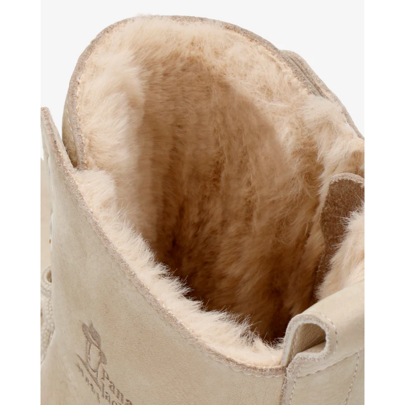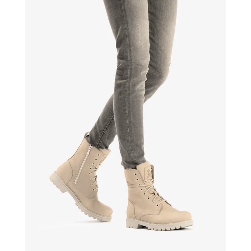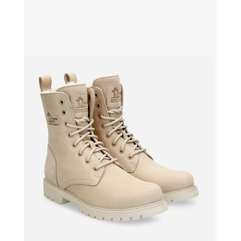 Botin de piel para mujer. Piel Nobuck Crudo WATERPROOF. Cierre de cordones y cremallera. Forro interior de Pelo. Plantilla anatómica extraíble. Suela de caucho natural, flexible y resistente.