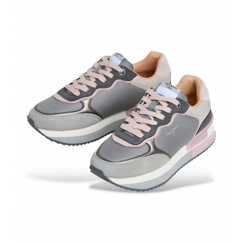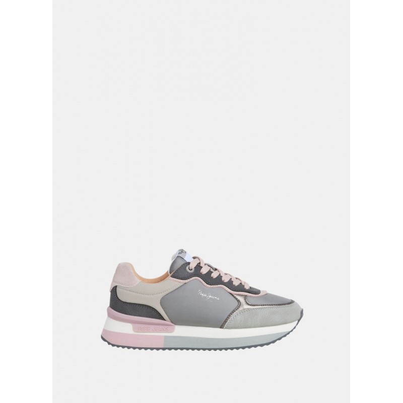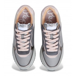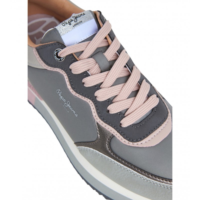 Deportivas casual para mujer. Cierre de cordones. Detalles ante en puntera y talón. Logotipo PEPEJEANS termosellado en lateral. Entresuela bicolor de plataforma en goma EVA.