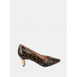 Zapato salón para mujer. Estampado animal print. Confeccionado en charol. Punta fina.