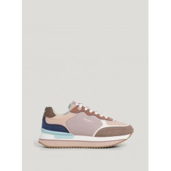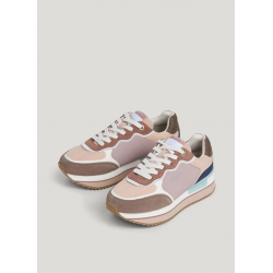 Deportivo con plataforma para mujer. Cierre de cordones. Detalles ante en puntera, cordonera y talón. Logotipo PEPEJEANS termosellado en lateral. Detalles acolchados en laterales.