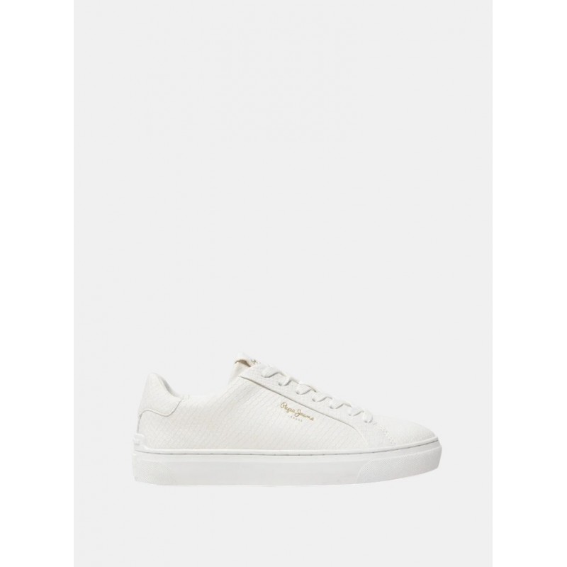 Deportivo casual para mujer.  Cierre de cordones. Logo PEPEJEANS termo sellado en laterales. Plantilla termoformada y extraíble con logo estampado. Textura de escamas en laterales y talón. Etiqueta con logo PEPEJEANS en lengüeta. Cuello acolchado. Suela cupsole de caucho.