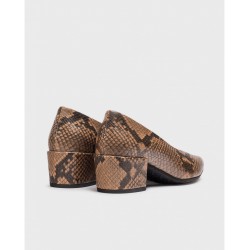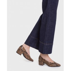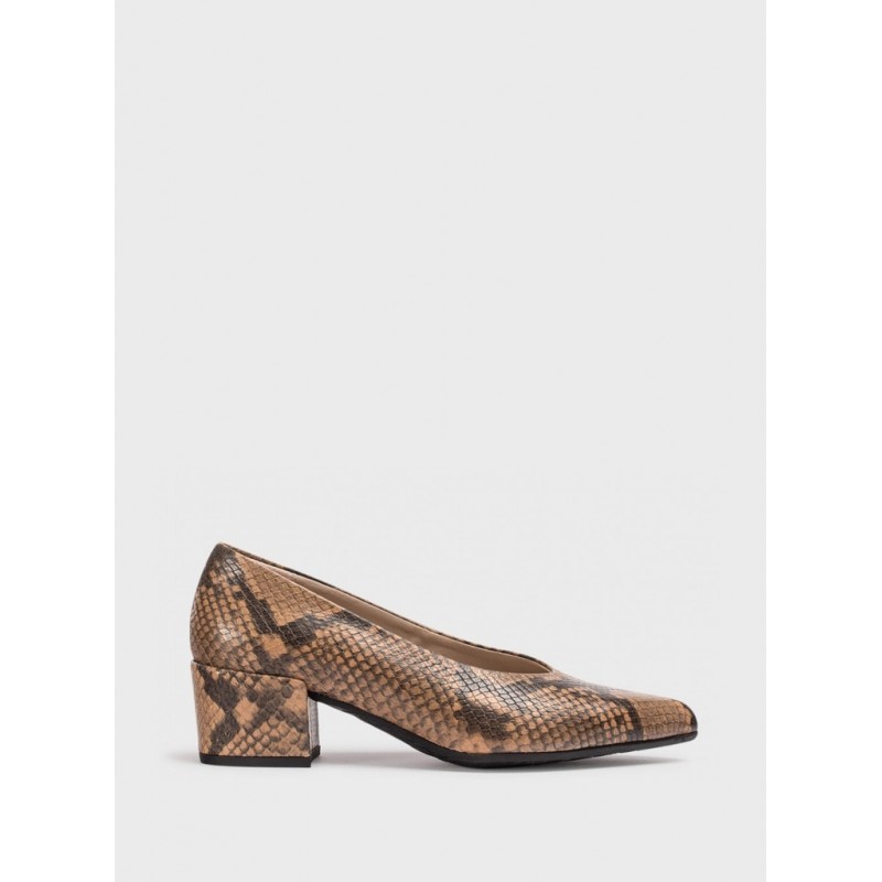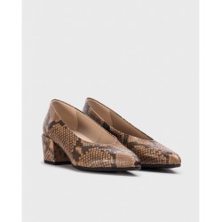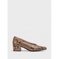 Zapato de salón para mujer. Fabricados en piel con grabado efecto serpiente. Su diseño de punta afilada y escote en V realza la silueta del pie, mientras que el tacón ancho de altura media garantiza estabilidad sin renunciar al estilo. Un zapato de líneas limpias y actitud atrevida, ideal para quienes buscan una alternativa refinada a los básicos de siempre. La suela de goma flexible aporta un extra de comodidad, combinado con la plantilla interior de MemoryGel que asegura una pisada amortiguada en cada paso.