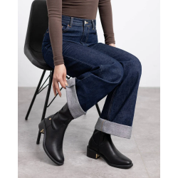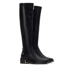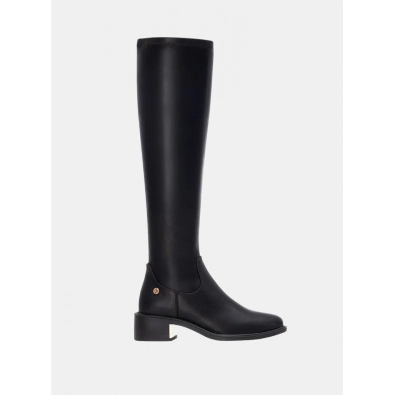 Bota de caña alta para mujer. Cuenta con una suela gruesa que ofrece mayor comodidad y estabilidad al caminar. Su material elástico se ajusta perfectamente a la pierna, proporcionando un outfit cómodo y estilizado. Ideal para un look casual y moderno.