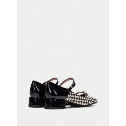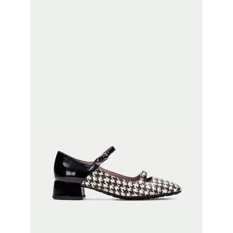 Merceditas de punta cuadrada para mujer. Con tiras ajustables con hebillas en el empeine.Piso efecto goma con diseño de perfil de tacos y tacón de 3cm.